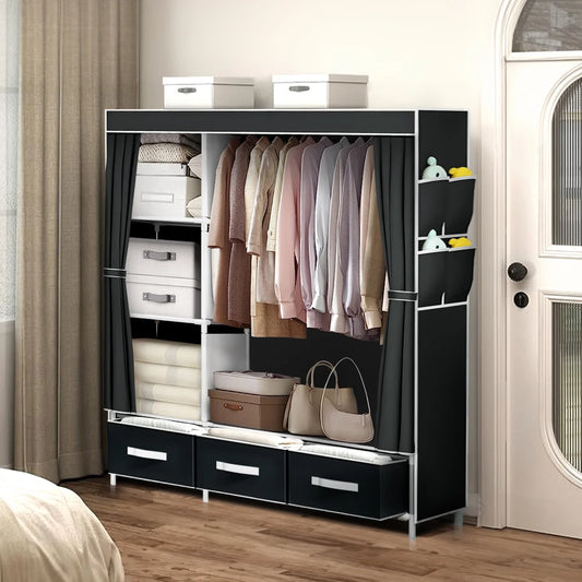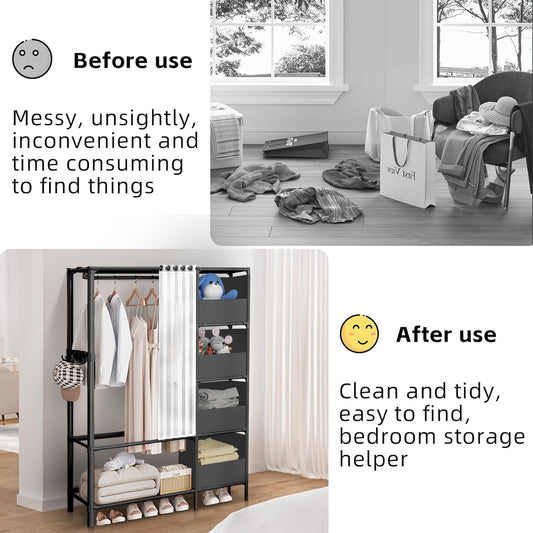 Portable Closet,Portable Wardrobe Closet Storage with 3 Hanging Rods,6 Storage Shelves,Side Pocket for Clothes Storage Organizer