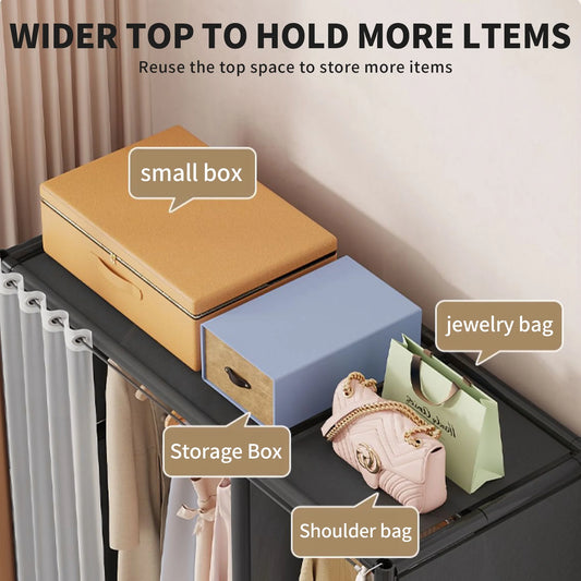 Portable Closet, Portable Wardrobe Storage Closet, Clothes Storage Cabinet with Curtain, for Bedroom, Clothes Room
