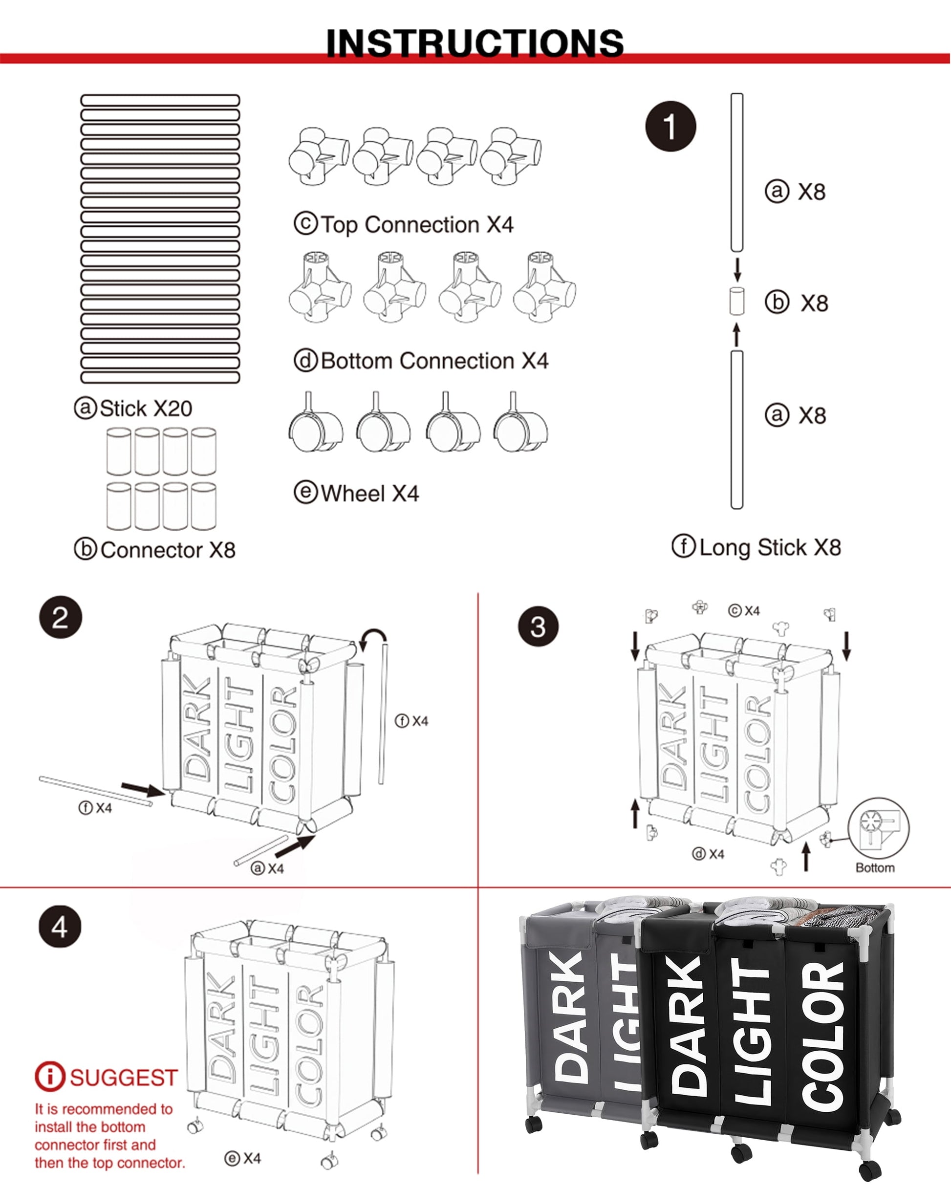 Thanks to the 4 wheels, you can move the laundry basket from room to room and easily take dirty clothes to the bathroom or laundry room when they need to be washed. The wheels are made of high quality rubber that will not scratch the floor.